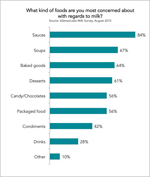 Not surprising, places where milk can hide in forms like butter, cream or any additives concerned people. The highest of these concerns were sauces and soups, which can often be based on a roux or garnished with cream. Yes, that tiny bit of butter mixed with flour can make folks sick!